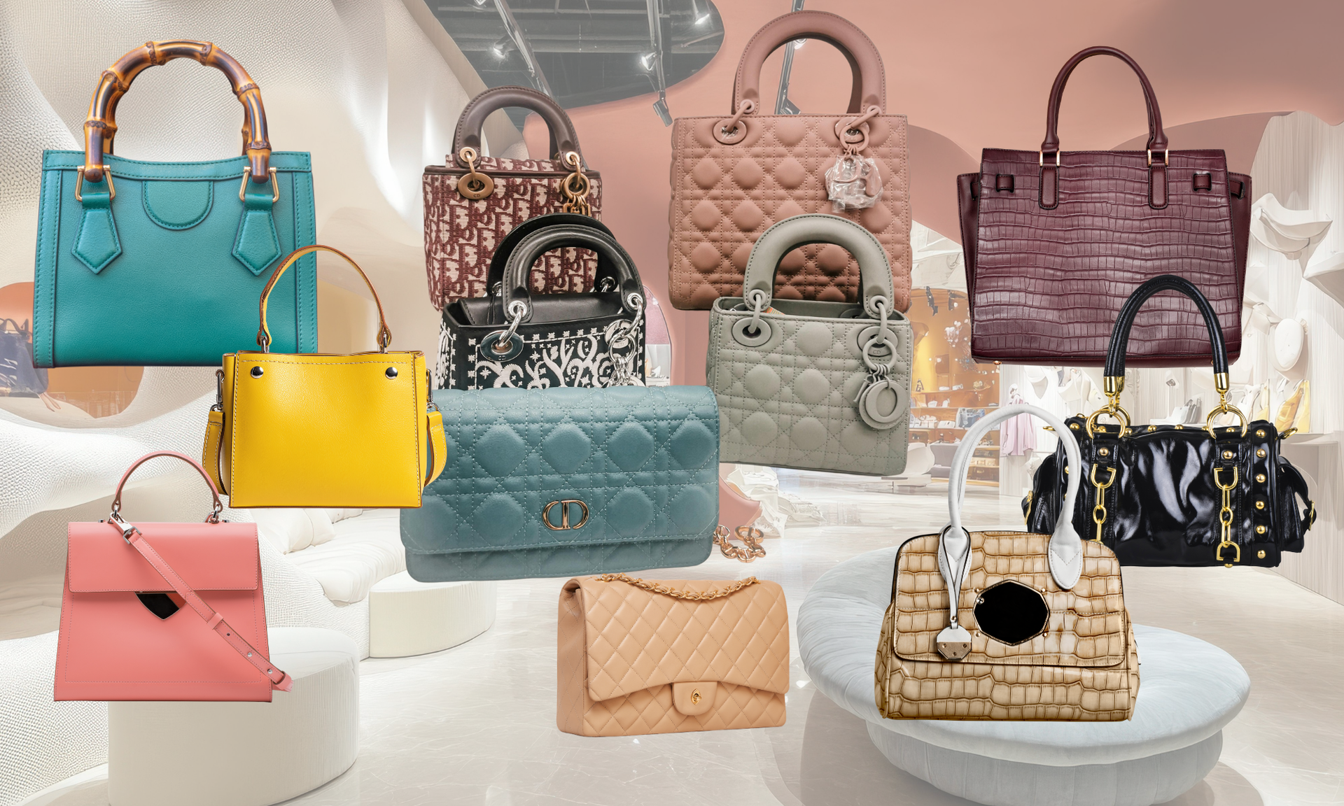 여성 원피스, 치마, 블라우스, 티셔츠, 니트, 자켓 등은 각각 면/실크/벨벳/웃 등의 소재에 따라 분류되며